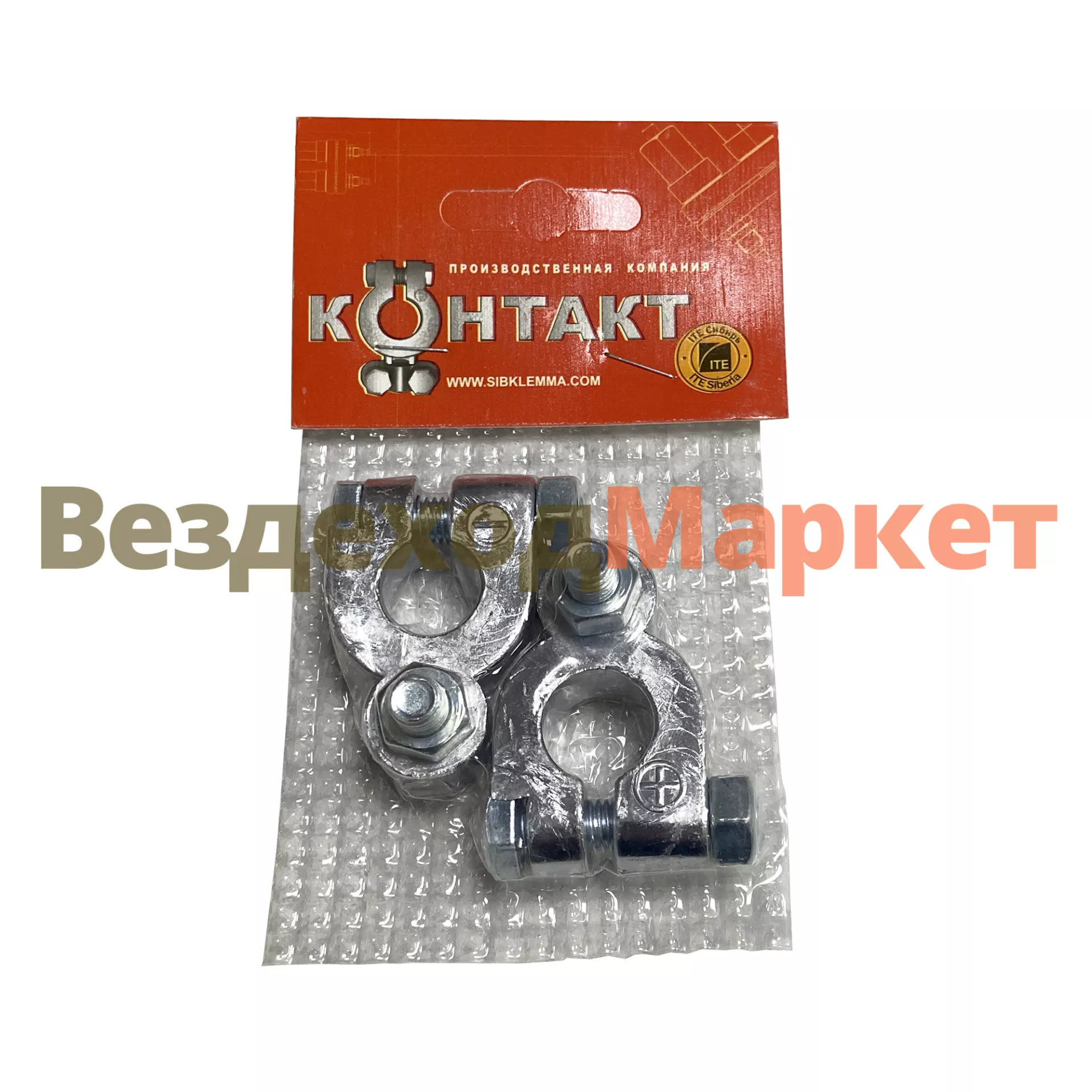Клемма АКБ 25042 грузов. малая к-т из 2-х шт; верт. крепл. провода под болт d=8мм (аналог 25007)/ Контакт