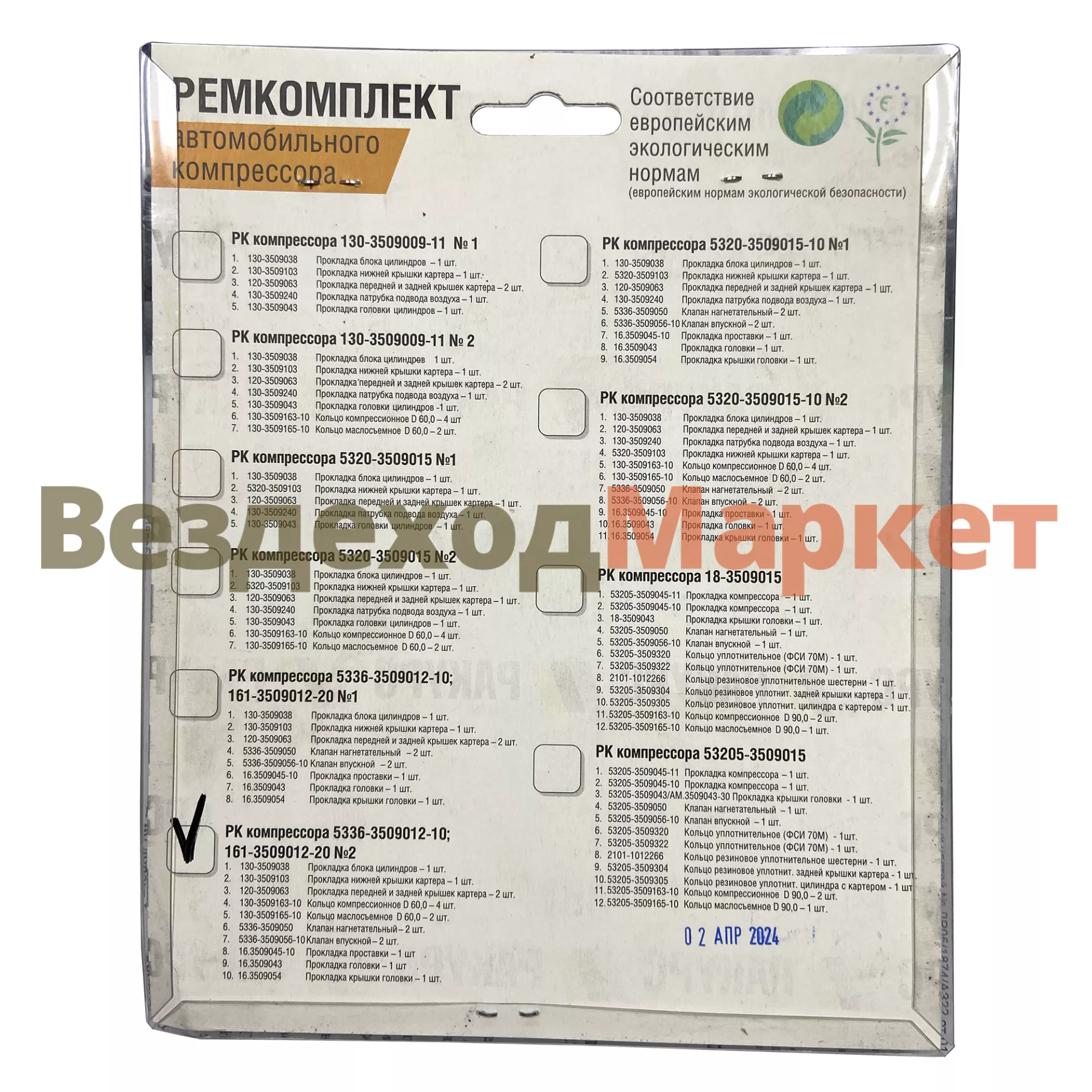 Р/к-т компрессора 5336-3509012-10/№2 2-х цилиндр. (10 поз: ) Ракурс